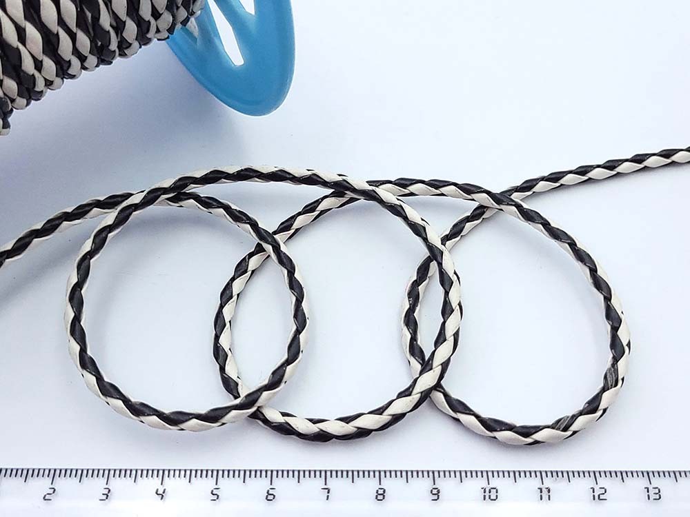 Шнур экокожа круглый плетеный 4мм/1м, черный + белый №572