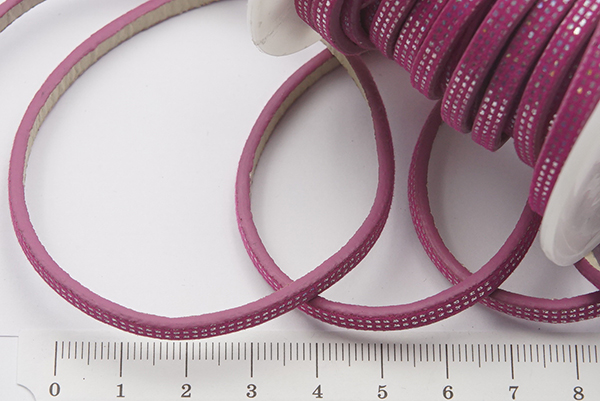 Шнур экокожа плоск, 4мм/1м, розовый с блеском №254