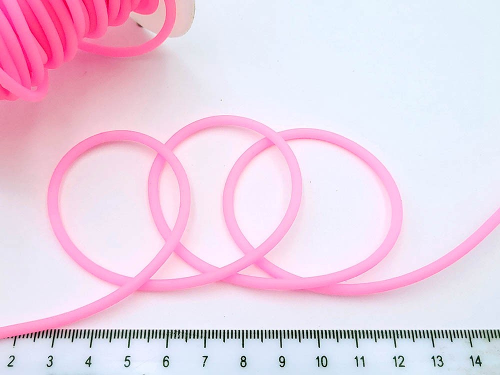 Шнур каучуковый полый, 3мм/1м, розовый неоновый №671 - Рукоделкино Товары для творчества Фурнитура для украшений
