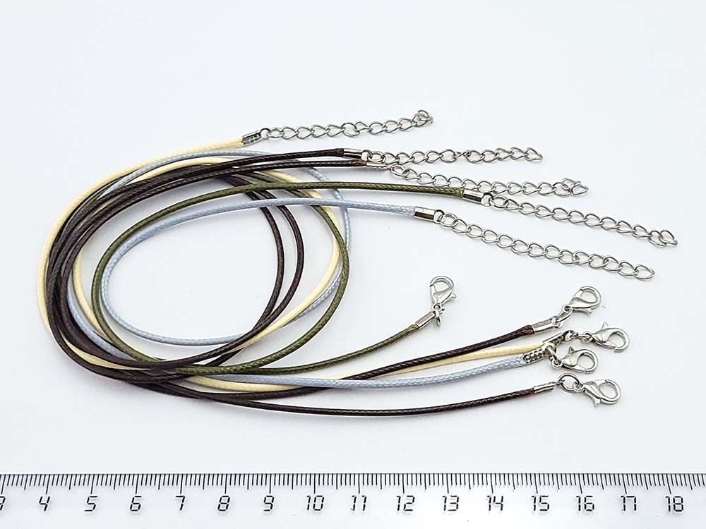 Шнур с застежкой кожзам 1,5мм, 40+5см, цветной в ассортименте
