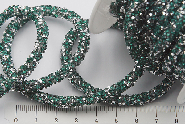 Шнур стразовый полый, 5мм/1м, серебр -зелен №544 - Рукоделкино Товары для творчества Фурнитура для украшений