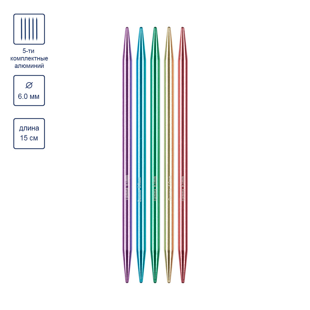 ГАММА CKN5 Спицы для вязания (5-ти комплектные), 15см, d-6,0мм, металл