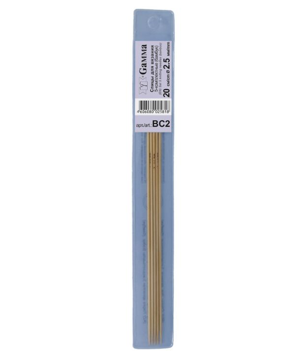 ГАММА Спицы для вязания, прямые, бамбук, 5шт, d-2,5мм, 20см