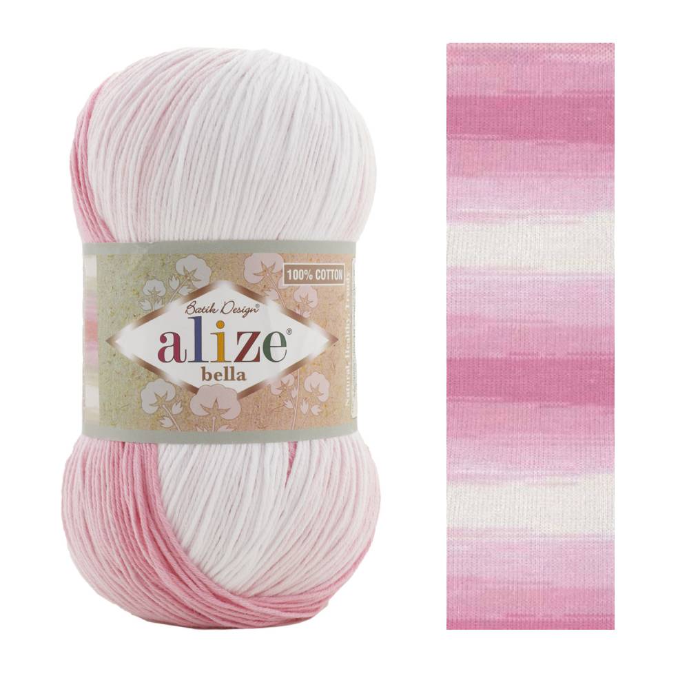 Пряжа ALIZE bella batik 7630, молочный/розовый/персик