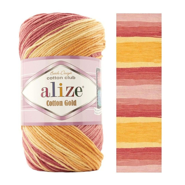 Пряжа ALIZE cotton gold batik, 7833 розовый/бордовый/желтый - Рукоделкино Товары для творчества Фурнитура для украшений
