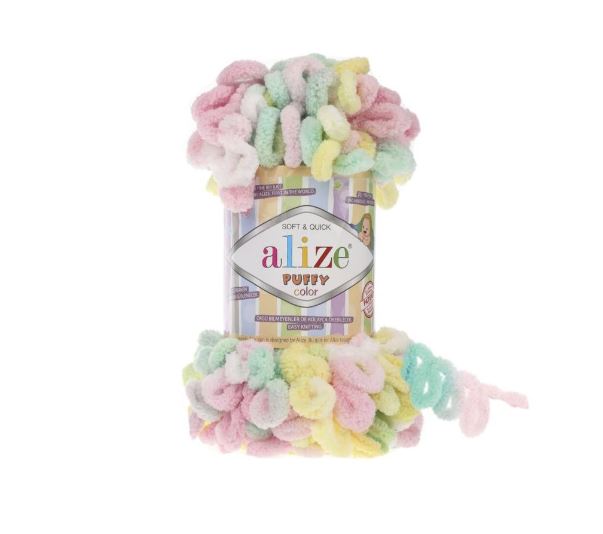 Пряжа ALIZE puffy color 5862  мята роз-желтый - Рукоделкино Товары для творчества Фурнитура для украшений