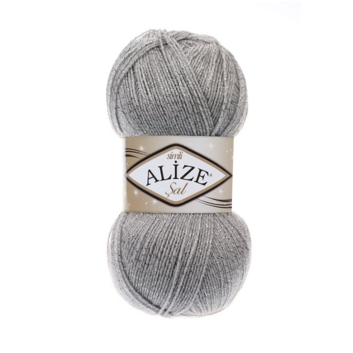 Пряжа Alize Sal silmi 95% акрил 5% металлик 21 серый меланж - Рукоделкино Товары для творчества Фурнитура для украшений
