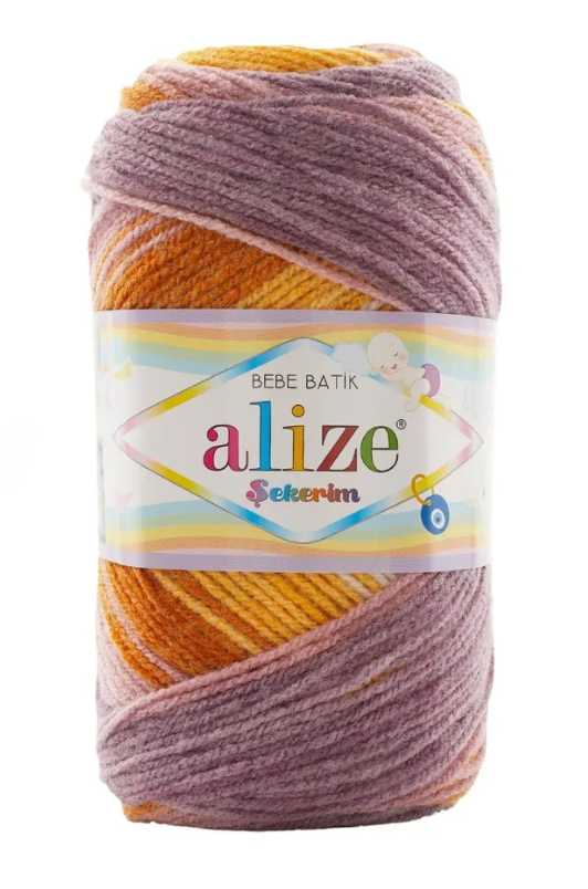 Пряжа ALIZE sekerim bebe batik 7921 светло-розовый, оранжевый.