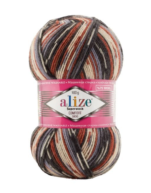 Главная / Всё для творчества и хобби / Вязание / Пряжа / Alize / Superwash comfort socks (75% шерсть, 25% полиамид, 100г/420м) / Пряжа ALIZE 7840 superwash, серый/чёрный/коричневый/слоновая кость