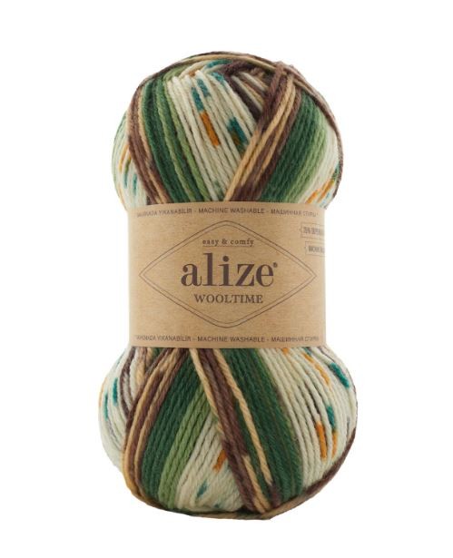 WOOL TIME цвет 11021 зелёный/коричневый/кремовый/шафран