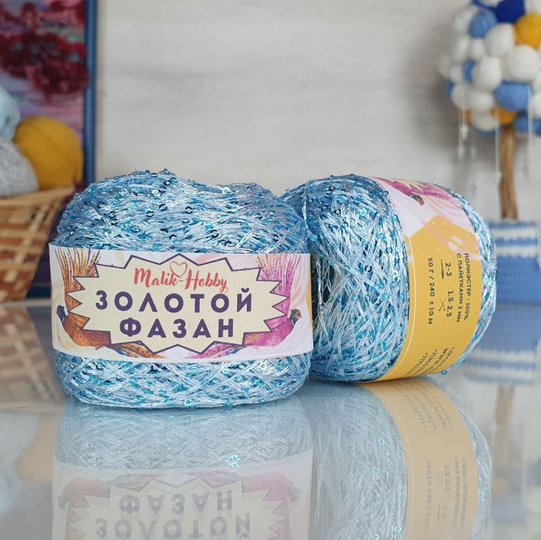МХ ЗОЛОТ ФАЗАН полиэстер с пайетками 50г/240м 121 св-голуб с бирюз пайет