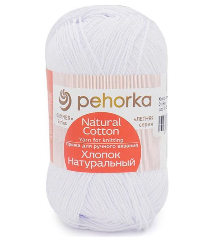 Пряжа Пехорка Хлопок натуральный цвет 01 белый