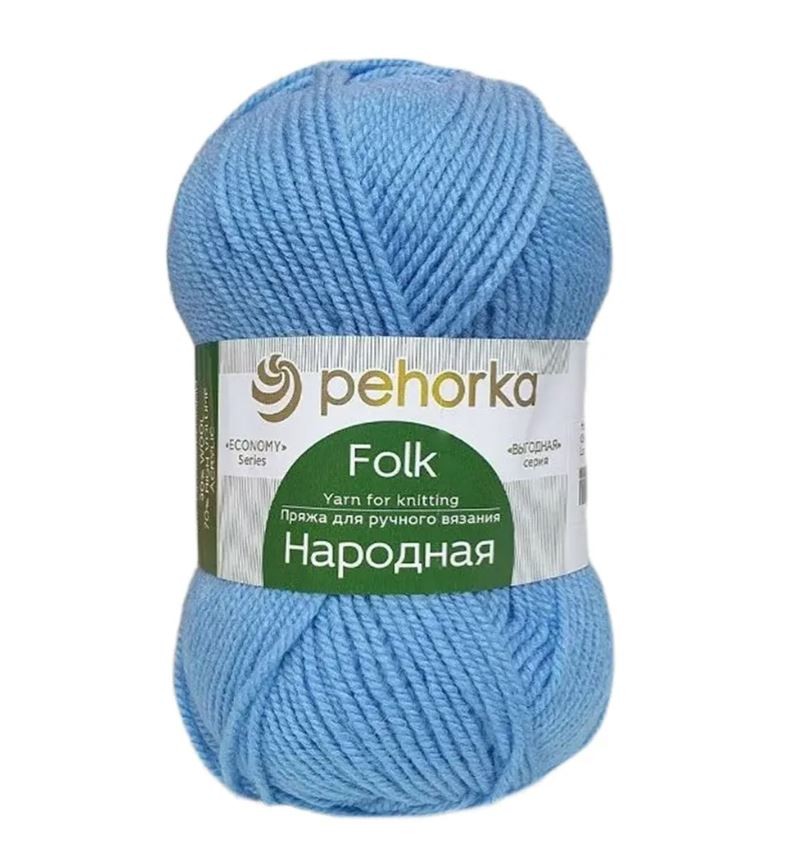 Пехорка Народная 05 голубой 30% шерсть, 70% акрил 100г/220м ,