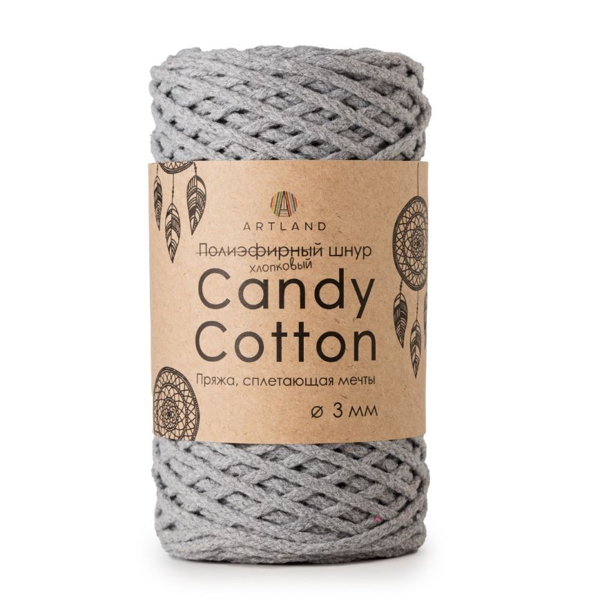 Шнур хлопковый CANDY  cotton 02 светло-серый 3мм - Рукоделкино Товары для творчества Фурнитура для украшений