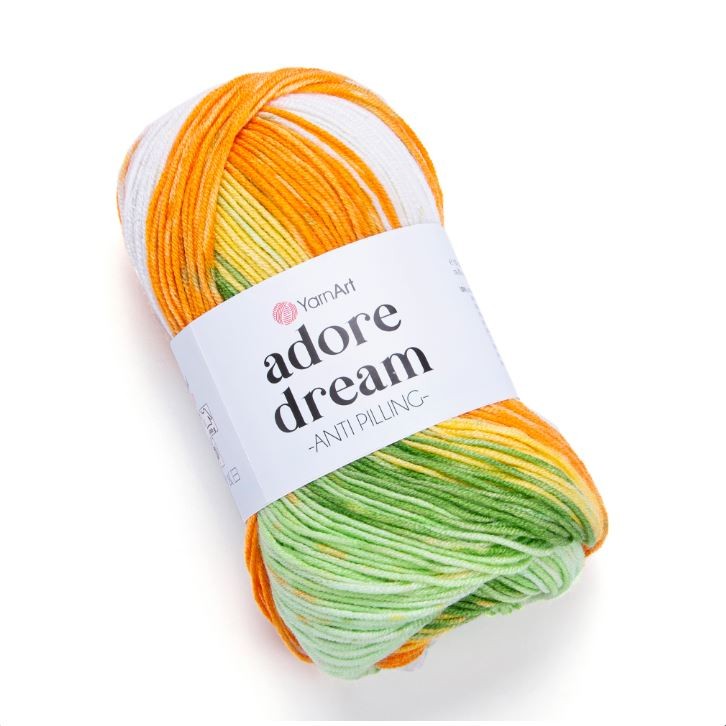 Пряжа YamArt Adore dream Anti pilling 1058 зеленый-оранж-белый
