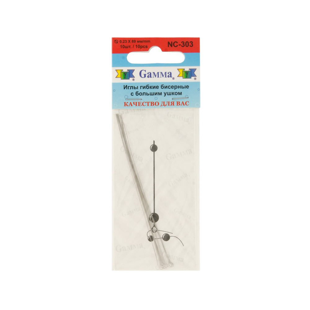 ГАММА NC-303 Иглы гибкие бисерные с большим ушком 0,23*89мм,10шт