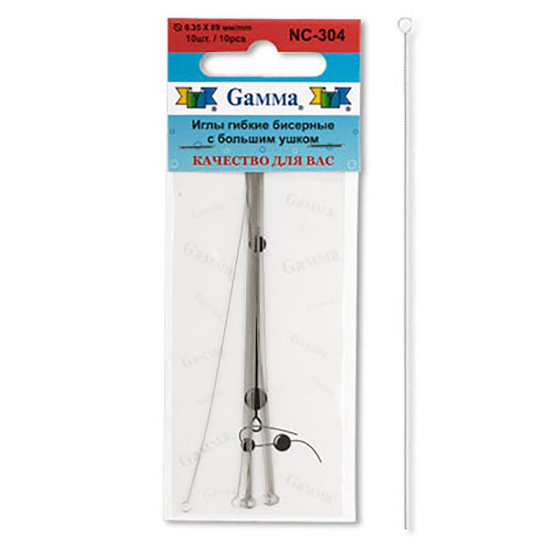 ГАММА NC-304 Иглы гибкие бисерные с большим ушком 0,35мм, 10шт