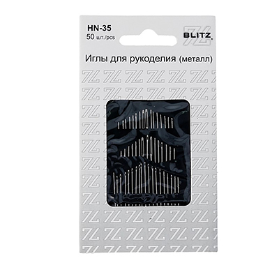 BLITZ HN-35 Иглы для рукоделия металл 50шт, разной длины и размер ушка