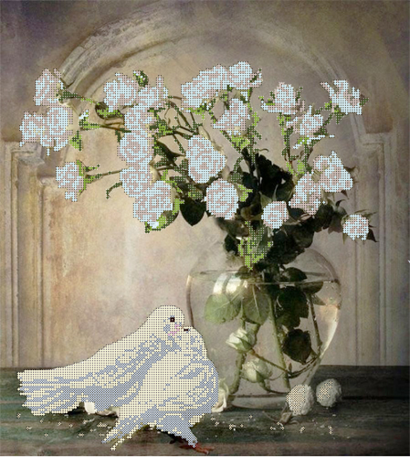70055 Принт на ткани для вышивки бисером Белый натюрморт, 36*40см