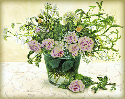 70077 Принт на ткани для вышивки бисером Настроение роз, 48*38см
