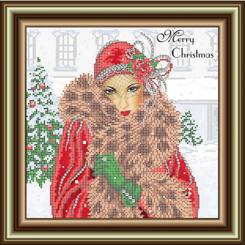 К3421 Принт на ткани для вышивки бисером Рождество 26*26см