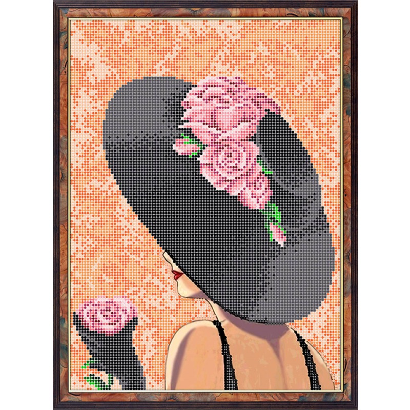 К4014 Принт на ткани для вышивки бисером Шляпка с розочками А4