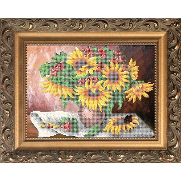 К3149 Принт на ткани для вышивки бисером Подсолнухи и рябина 38*26см