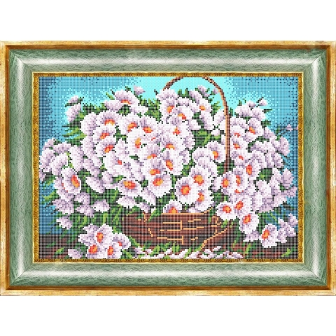 К3161 Принт на ткани для вышивки бисером Корзина с ромашками, 38*26см