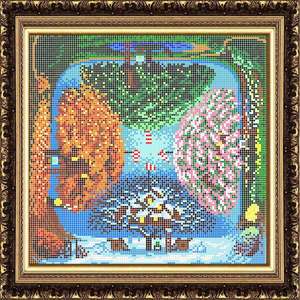 К3190 Принт на ткани для вышивки бисером Времена года 2,26*26см