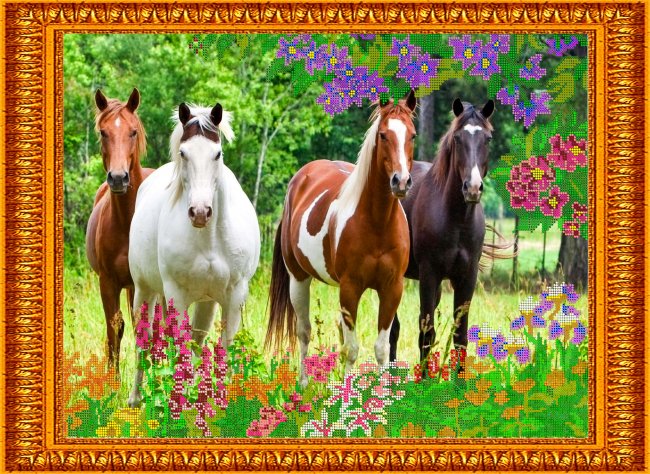 Светлица К-115 Принт на ткани для вышивки бисером Календарь Лошади, 57*58см