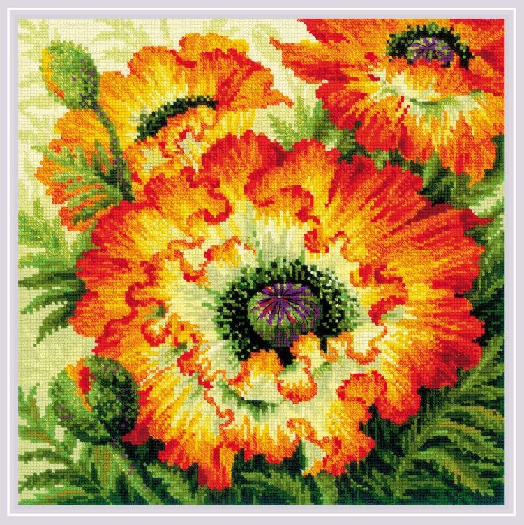 Риолис 2080 Набор для вышивания крестом «Пламенные маки» 40*40см